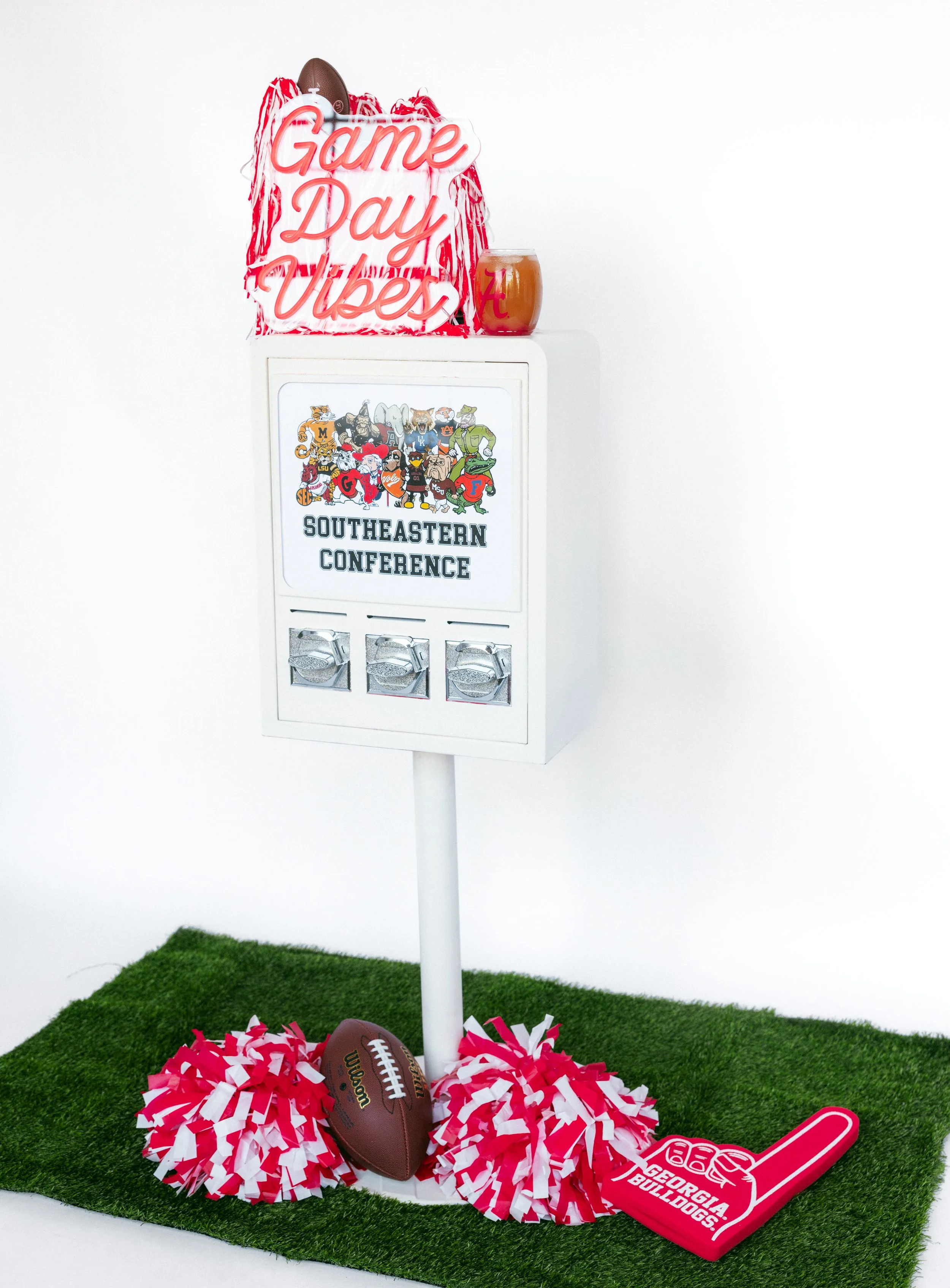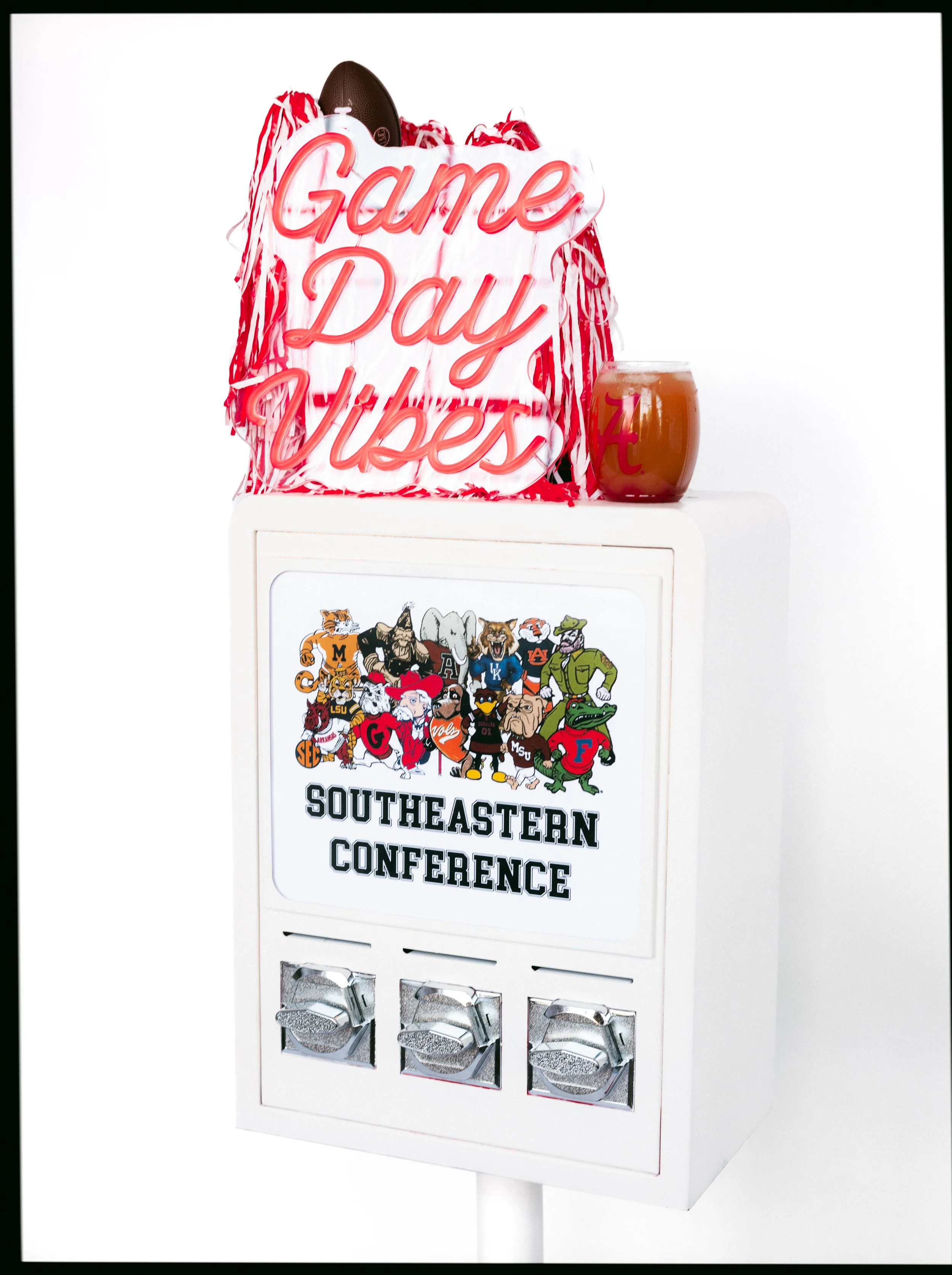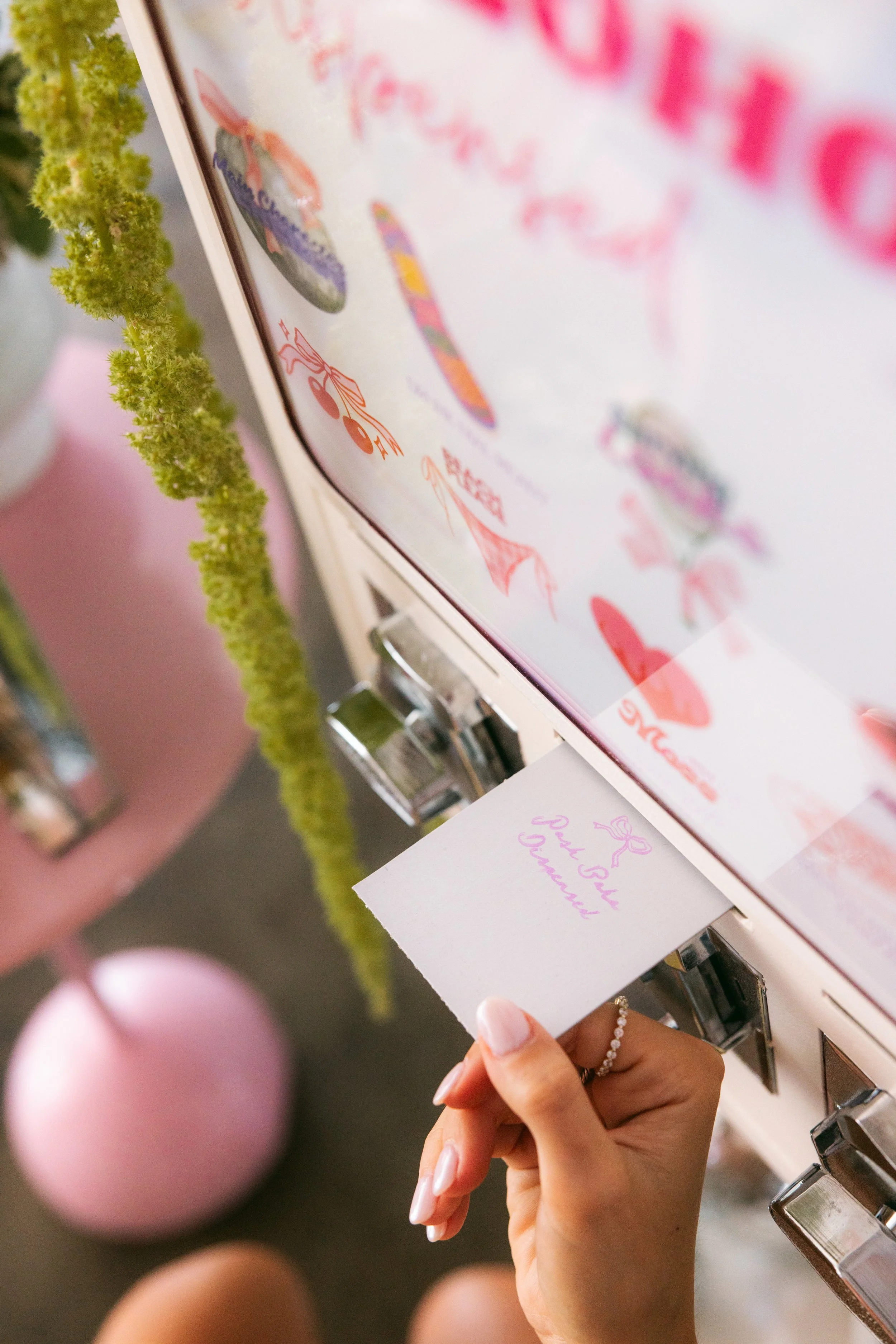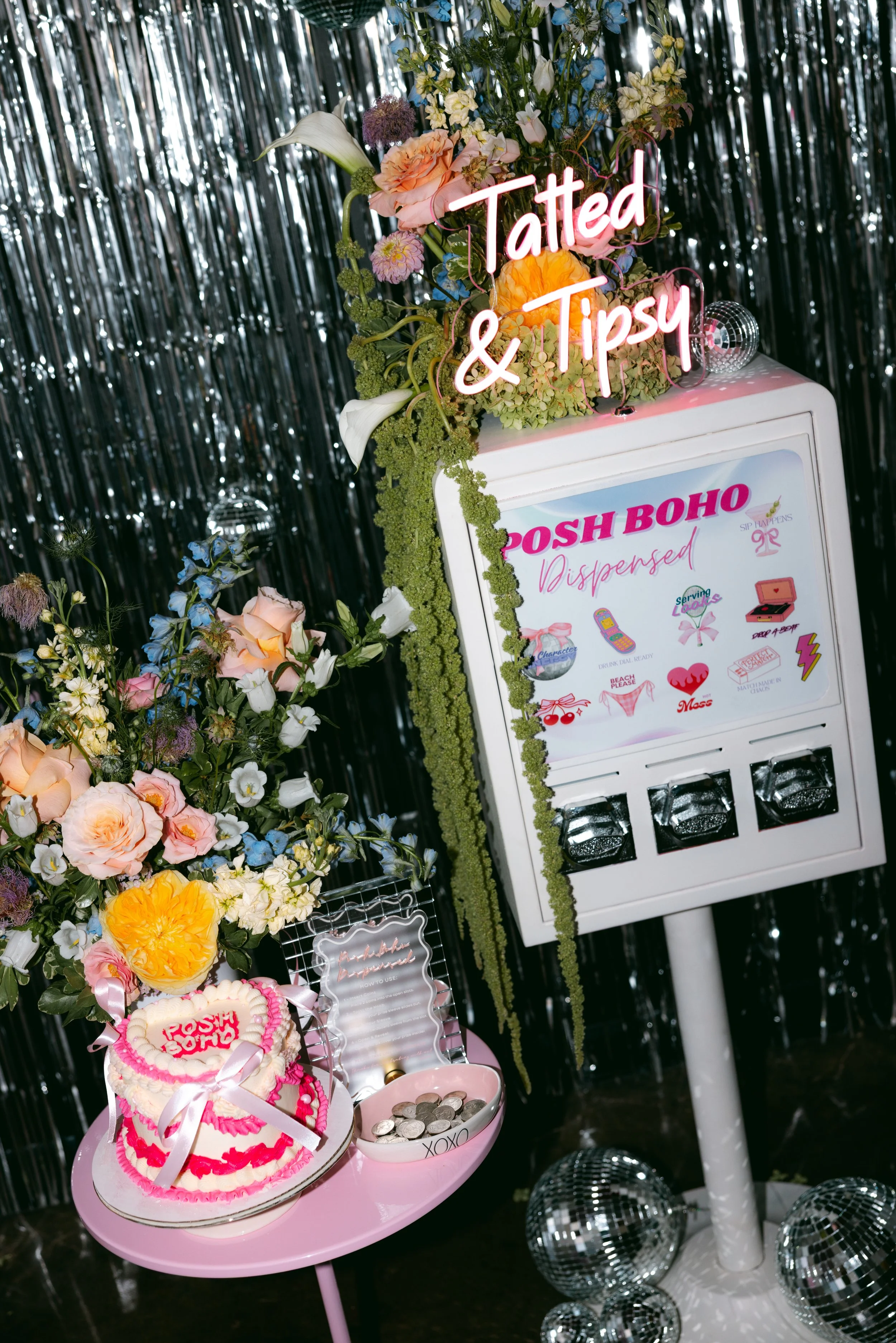 Guests can enjoy peronsalized keepsakes (with your names, date, or theme), while the machine’s display is fully customizable to match your decor- adding a touch of chic nostalgia to your celebration.